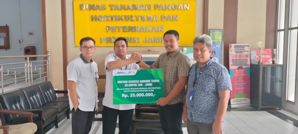 paalmerah.com – Jambi – Akhir tahun 2022 ditutup PTPN VI dengan indah dan elegan. Caranya, memberikan kucuran dana bantuan Corporate Social Resposibility (CSR) kepada 10 kelompok peternak ayam sebesar Rp 25 juta.. Bantuan PTPN ini diserahkan Kamis (29/12/2022) kepada Kadis Pertanian dan Peternakan Provinsi Jambi, Ir Ahmad Mousul. “” Kami serahkan lewat Dinas Pertanian.