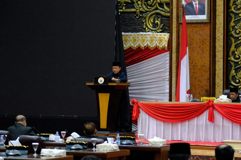 paalmerah.com – Gubernur Jambi, Dr.H.Al Haris,S.Sos.,M.H., mengemukakan, Pemerintah Provinsi Jambi mengajukan Rancangan Peraturan Daerah (Ranperda) kepada Dewan Perwakilan Rakyat Daerah (DPRD) Provinsi Jambi guna memperkuat tata kelola pemerintahan daerah yang bisa lebih fokus pada suatu bidang agar kinerja dalam mengaplikasikan kepada masyarakat lebih meningkat lagi. Hal tersebut dikemukakan Al Haris pada Rapat Paripurna DPRD Provinsi Jambi dalam rangka Pembukaan Masa Persidangan Pertama Tahun 2023 dan Persetujuan Dewan terhadap 5 Ranperda Provinsi Jambi Mantap Expo 2023, yang berlangsung di Ruang Rapat Paripurna DPRD Provinsi Jambi, Rabu (04/01/2023) malam.