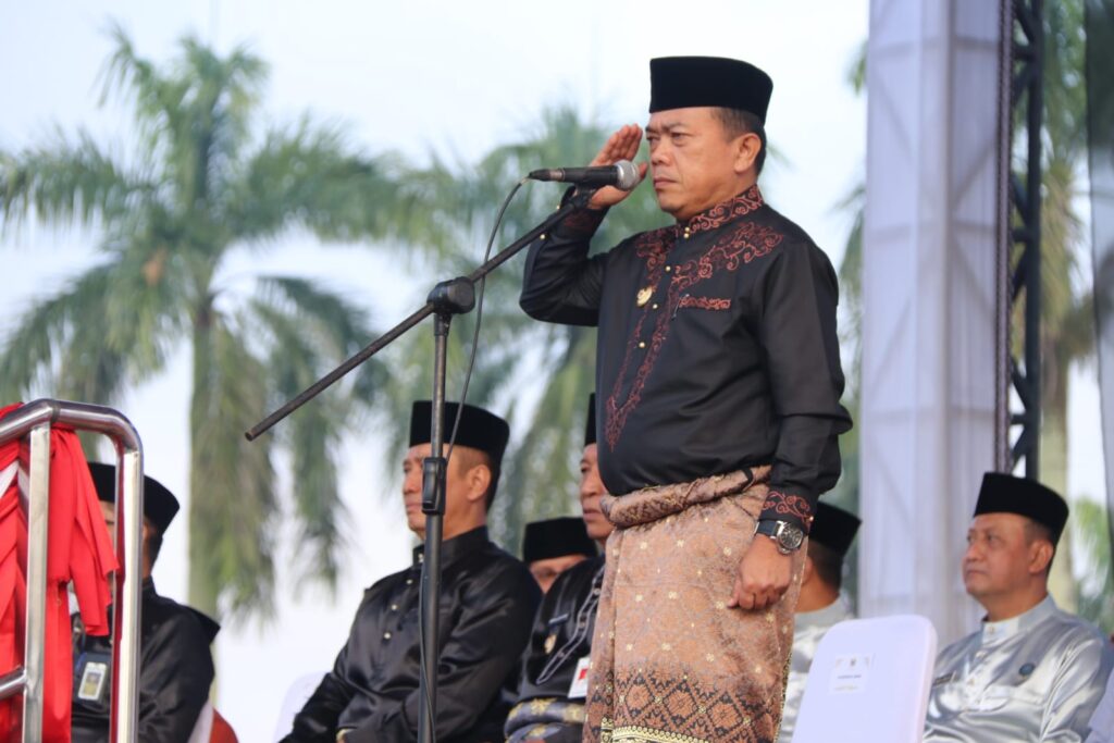 paalmerah.com – Gubernur Jambi, Dr.H.Al Haris,S.Sos.,M.H., mengajak seluruh komponen masyarakat Provinsi Jambi Bersatu padu dan bergerak bersama sama dalam membangun Provinsi Jambi. Hal tersebut disampaikan Al Haris pada Upacara Peringatan Hari Ulang Tahun (HUT) ke 66 Provinsi Jambi Tahun 2023, bertempat di Halaman depan Kantor Gubernur Jambi, Jum’at (06/01/2023).