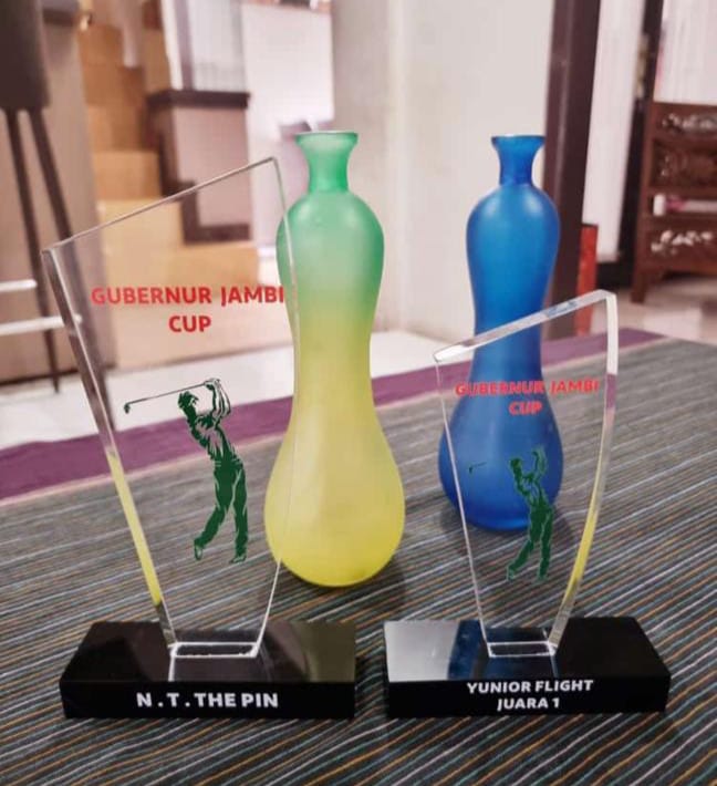 Ais, sapaan Fariz merebut juara 1 Junior Flight dan N.T The Pin. 2 piala Ais raih di turnamen yang berlangsung di Lapangan Golf Karya, Telanaipura, Kota Jambi, Sabtu (25/2/23).