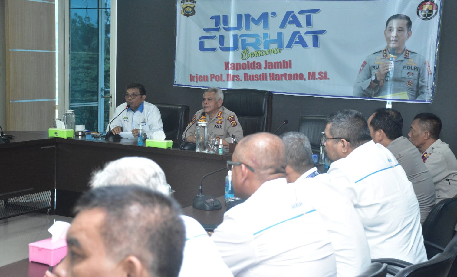 Paalmerah.com – Pada kesempatan kali ini, Polda Jambi melalui Dit Pamobvit menggelar Jum’at curhat bersama PT. Perkebunan Nusantara VI dengan mendatangi langsung kantor PTPN VI pada Jum’at, (26/05/2023).