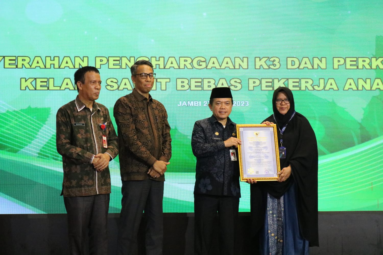 Paalmerah.com – Gubenur Jambi DR Al Haris S,Sos MH memberikan penghargaan Keselamatan dan Kesehatan Kerja (K3) serta bebas Pekerja Anak kepada PTPN VI. Sebelumnya pemerintah dan perusahaan perkebunan kelapa sawit telah berkomitmen tidak memperkerjakan anak di bawah umur.