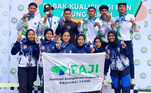 Memperoleh 3 emas, 4 perak dan 4 perunggu, atlet Jambi dibawah naungan Federasi Arung Jeram Indonesia (FAJI) menyisihkan Provinsi Lampung, Riau dan Bengkulu.