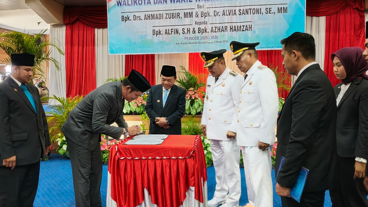 Paalmerah.com — Gubernur Jambi Al Haris menyaksikan serah terima jabatan (Sertijab) Walikota dan Wakil Walikota Sungai Penuh dari Ahmadi Zubir dan Alvia Santoni kepada Alfin dan Azhar Hamzah.