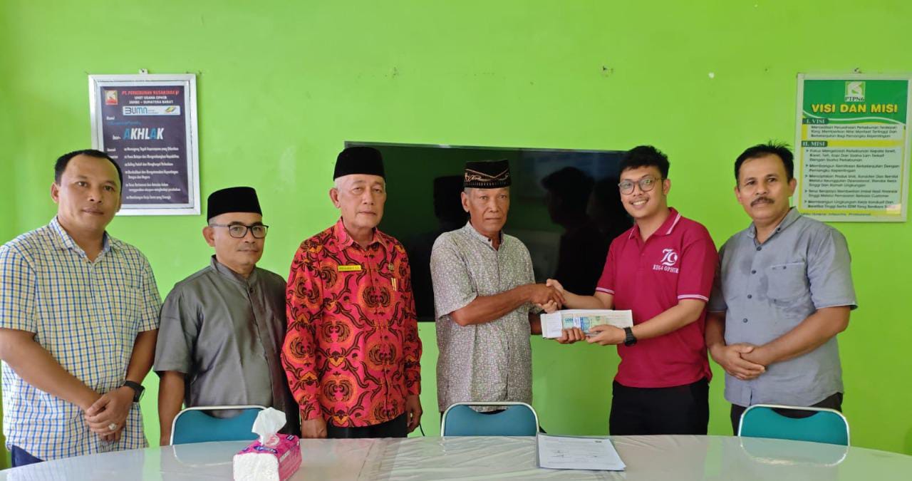 Pasaman Barat – Komitmen PT Perkebunan Nusantara IV (PTPN IV) Regional 4 Kebun Ophir dalam mendukung pembangunan spiritual dan sosial masyarakat kembali ditunjukkan dengan aksi nyata. Melalui program Tanggung Jawab Sosial dan Lingkungan (TJSL) tahun 2025, PTPN IV menyalurkan bantuan sebesar Rp 5.000.000 untuk pembangunan Masjid Nurul Falah, yang terletak di Jorong Lapau Tempurung, Nagari Ampek Koto, Kecamatan Kinali, Kabupaten Pasaman Barat.