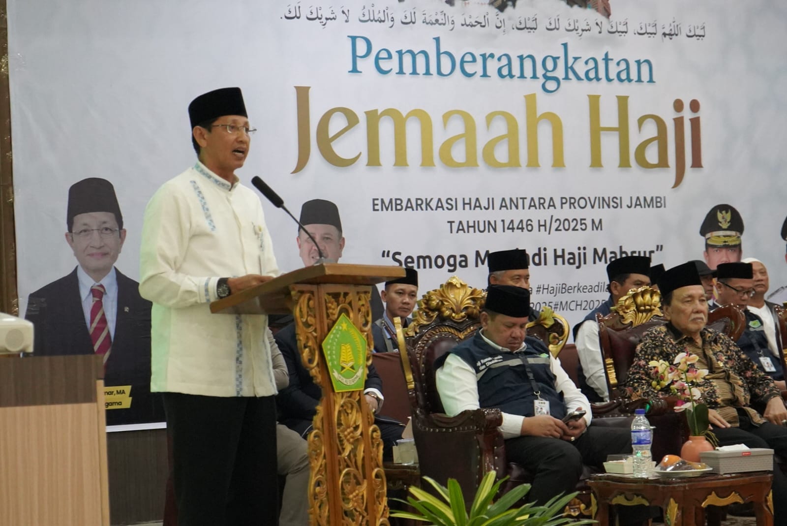 Dalam sambutan dan arahannya, Asisten II Johansyah menyampaikan pesan dari Gubernur Jambi kepada para jemaah calon haji untuk senantiasa benar-benar menjaga kesehatan karena ibadah haji ini tidak hanya memerlukan kesiapan mental, tetapi juga fisik yang kuat dan selalu menjaga kekompakan.