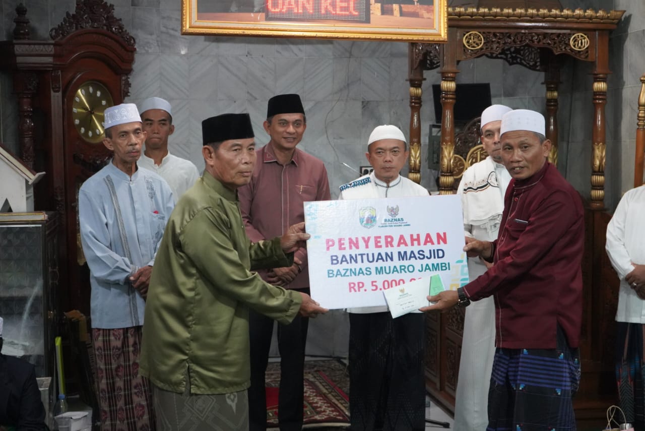 Usai sholat isya dan tarawih bersama Gubernur Al Haris menyerahkan beberapa bantuan, diantaranya bantuan CSR dari Bank 9 Jambi Rp. 20 juta dan bantuan dari Baznas Provinsi Jambi Rp. 5 juta kepada pengurus Masjid Nurusa’adah serta bantuan untuk kaum dhuafa dan anak yatim juga dari Baznas Provinsi Jambi sebanyak 20 paket. (*)